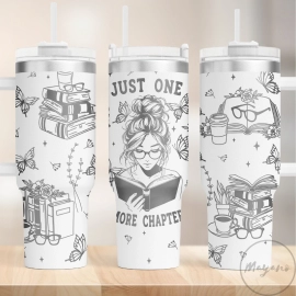Just One More Chapter Book Lover Laser Engraving 30oz or 40oz Tumbler with Handle, Birthday Anniversary Tumbler Gift HFN