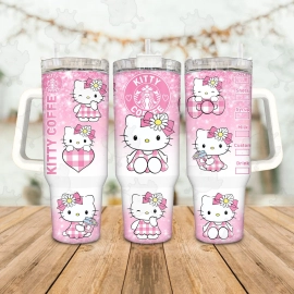 Kitty Coffee Pink Cat 30oz or 40oz Tumbler with Handle, Gift for Hello Kitty Fan, Birthday Anniversary Tumbler Gift HFN