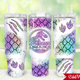 Motherhood A Walk In The Park 30oz or 40oz Tumbler with Handle, Birthday Anniversary Tumbler Gift HFN, Dinosaur Mom Tumbler, Glitter 40 oz Quencher Tumbler