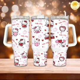 Pink Hello Kitty Valentine 30oz or 40oz Tumbler with Handle, Gift for Kitty fan, Birthday Anniversary Tumbler Gift HFN