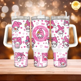 Pink Cat My Melody Coffee Tumbler 30oz or 40oz, Valentine Movies Tumbler, Pink Valentine 40oz Quencher Tumbler, Valentine Cartoon 40oz Tumbler HFN