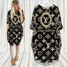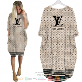Gift For LV2 Lover LV2 Brown Pattern Batwing Pocket Dress HG Hot Gifts For Men Women HG