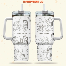 Lilo And Stitch Disney Cartoon 30oz or 40oz Quencher Stainless Steel Tumbler With Handle, Best Gift Idea NVA