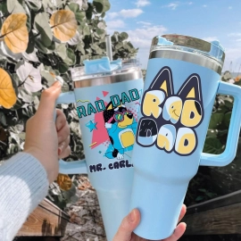 Personalized Rad Dad Tumbler HG 40oz, Blue Bingo Dad Father’s Day Custom Cup, Cool Dad Club Blue Fans