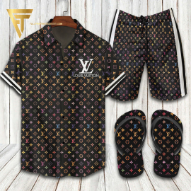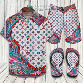 lv2 Colorful Logo Luxury Brand Hawaiian Shirt And Shorts Or Flip flops HG