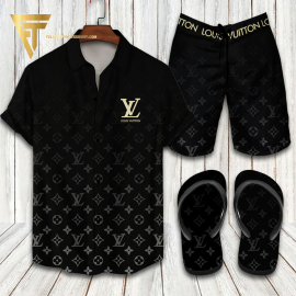 LV2 gold black logo vintage Hawaiian Shirt And Shorts Or Flip flops QDH