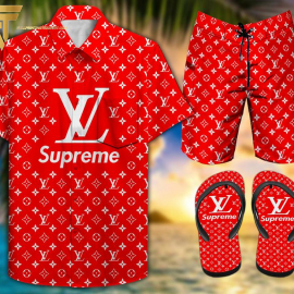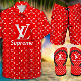 lv2 SPRM Red Luxury Brand Hawaiian Shirt And Shorts Or Flip flops HG