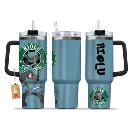 Riolu Coffee Pokemon Anime Custom 30oz or 40oz Quencher Stainless Steel Tumbler With Handle, Best Gift Idea NVA