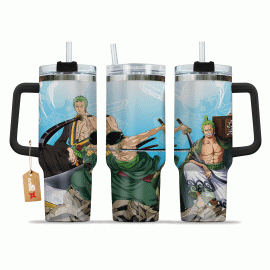 Roronoa Zoro One Piece Anime Custom 30oz or 40oz Quencher Stainless Steel Tumbler With Handle, Best Gift Idea NVA, Best Gift Idea NVA