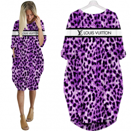 lv2 Designer Brand Gift For lv2 Purple leopard Luxury Pattern Batwing Pocket Dress HG Hot Gifts For Women HG