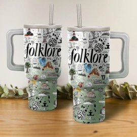 Taylor Swift Folklore Album Music Custom Stanley Quencher 40oz Stainless Steel Tumbler HG With Handle