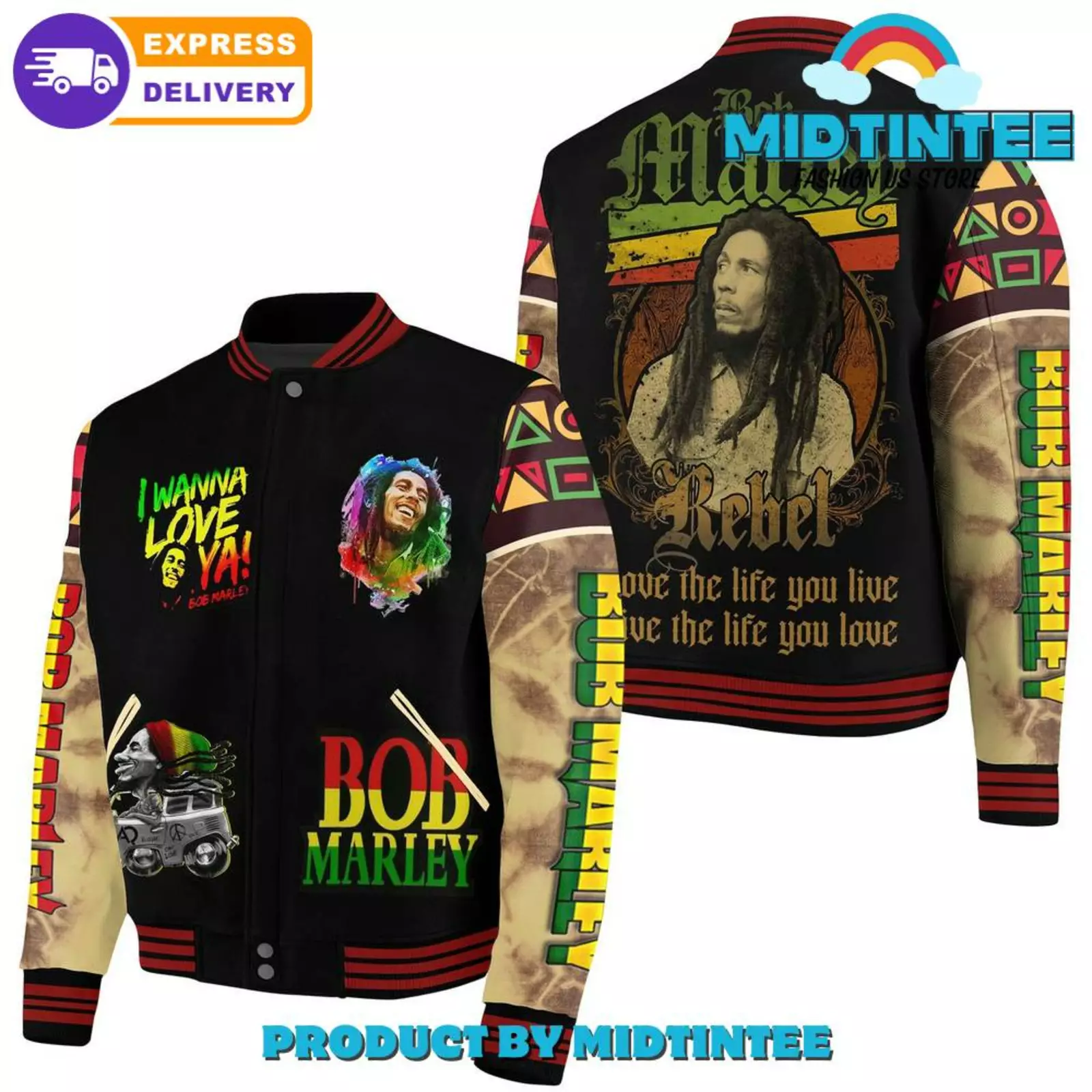 Bob Marley I Wanna Love Ya Baseball Jacket HG