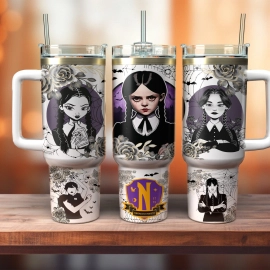 Wednesday Addams TV Series Custom Quencher 30oz or 40oz Stainless Steel Tumbler With Handle, Best Gifts NVA