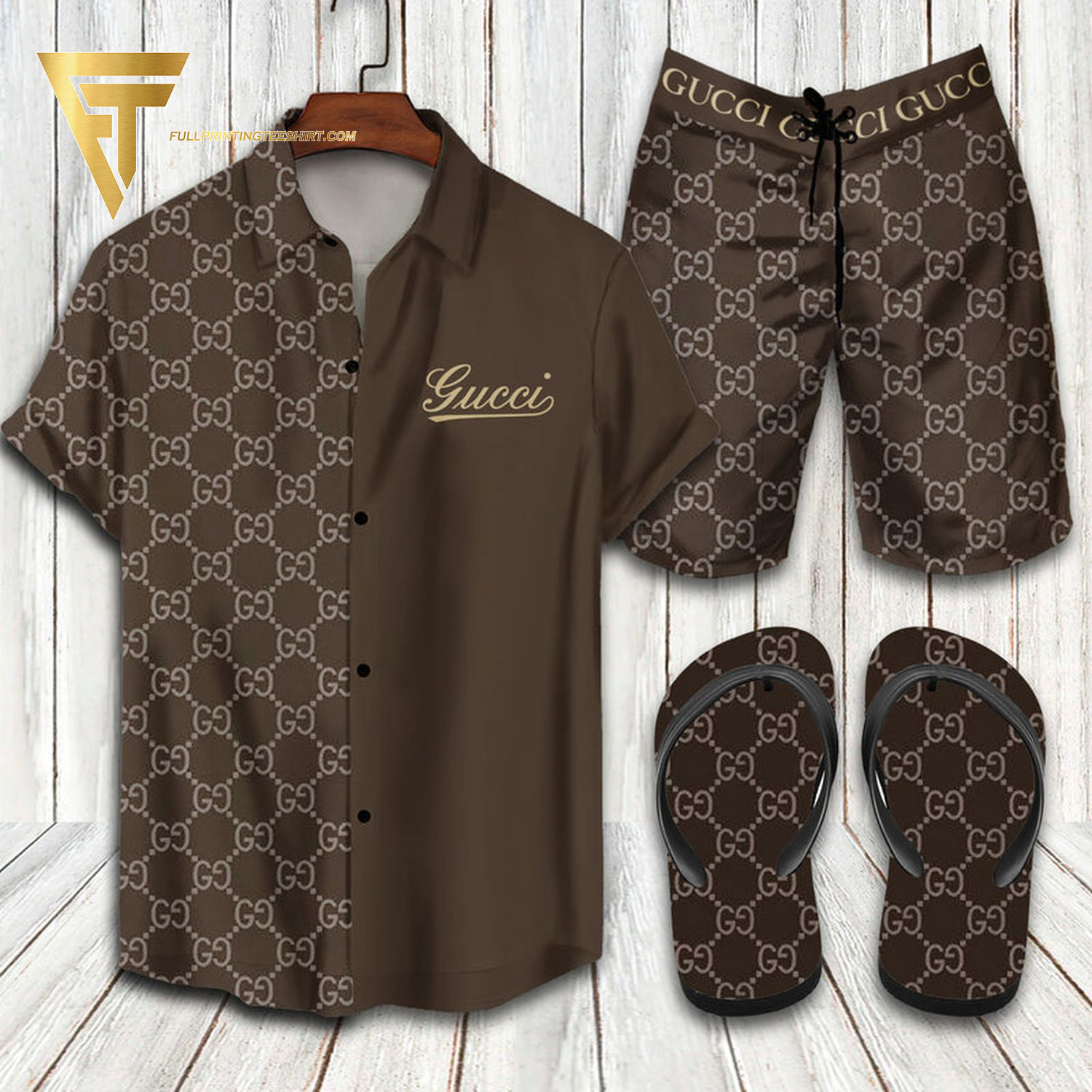 GC1 light brown classic version all over print Hawaiian Shirt And Shorts Or Flip flops QDH