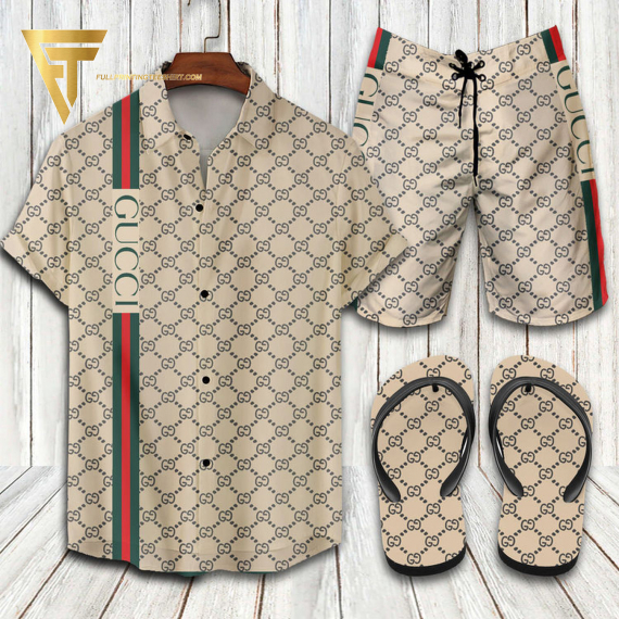 GC1 logo classic striped all over print Hawaiian Shirt And Shorts Or Flip flops QDH