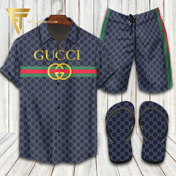 GC1 monogram navy all over print Hawaiian Shirt And Shorts Or Flip flops QDH