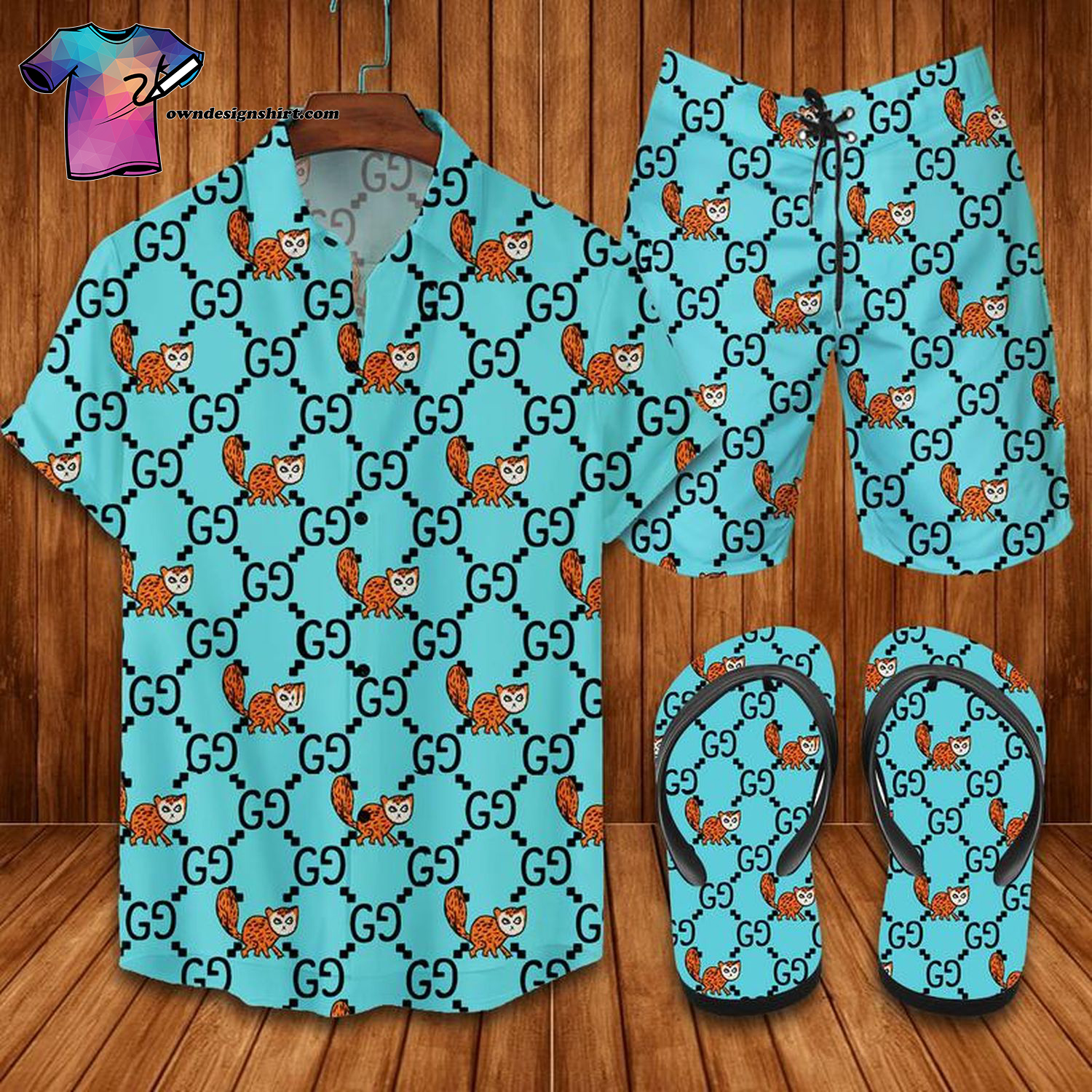 gc1 Teal Logo Full Print Luxury Brand Hawaiian Shirt And Shorts Or Flip flops HG