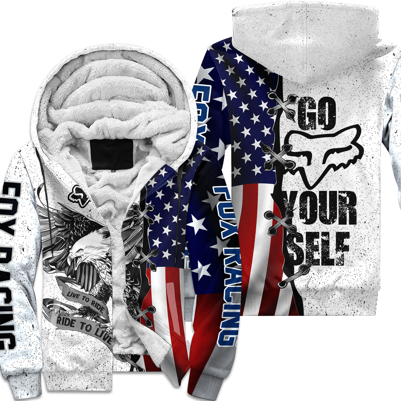 Gift For Racing Lover FOX Racing And Us Flag Go Fx Yourself Fleece Hoodie HG