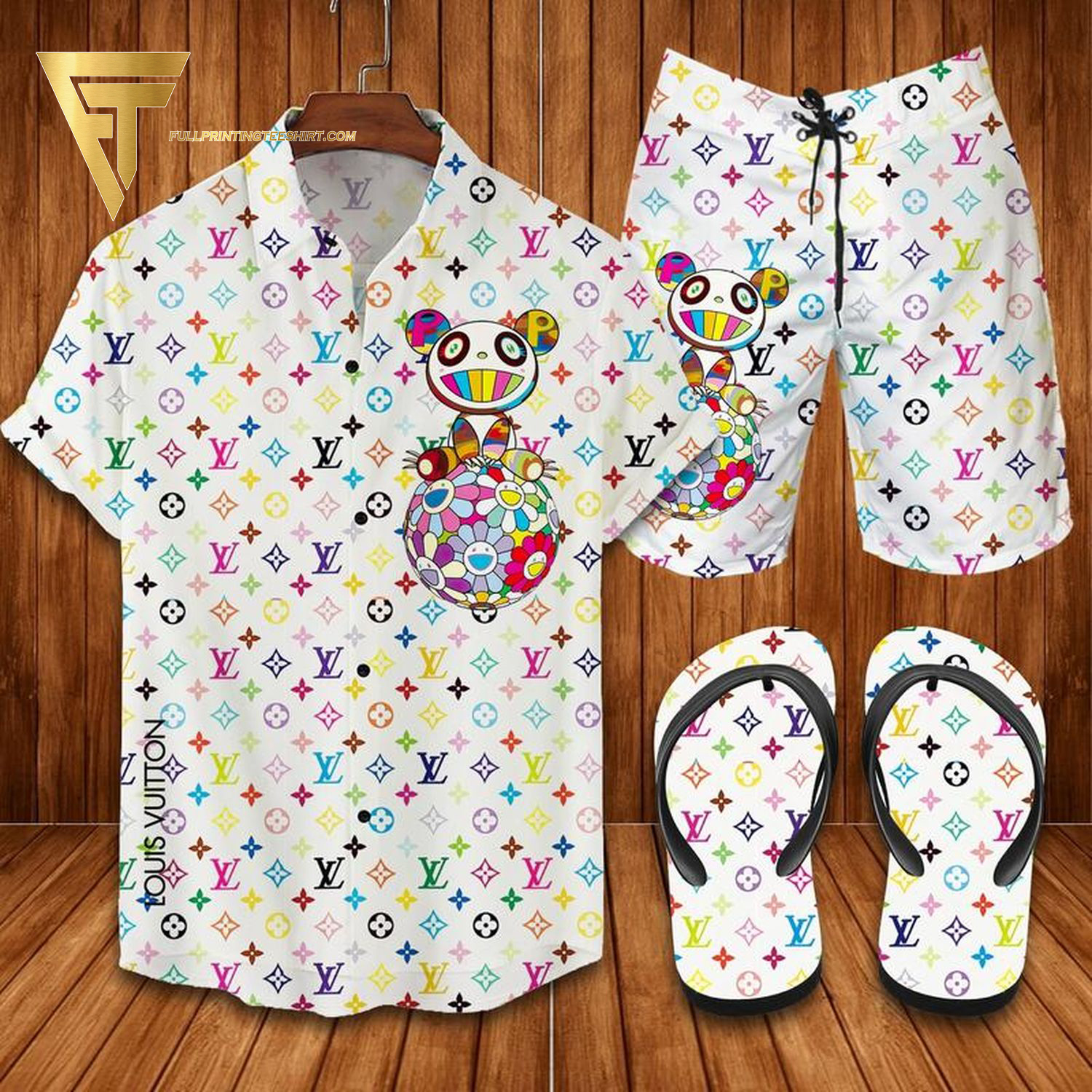 lv2 Bear Flower Luxury Brand Hawaiian Shirt And Shorts Or Flip flops HG