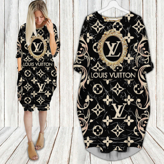 lv2 Black Batwing Pocket Dress Luxury Brand Clothing Clothes Outfit For Women HT