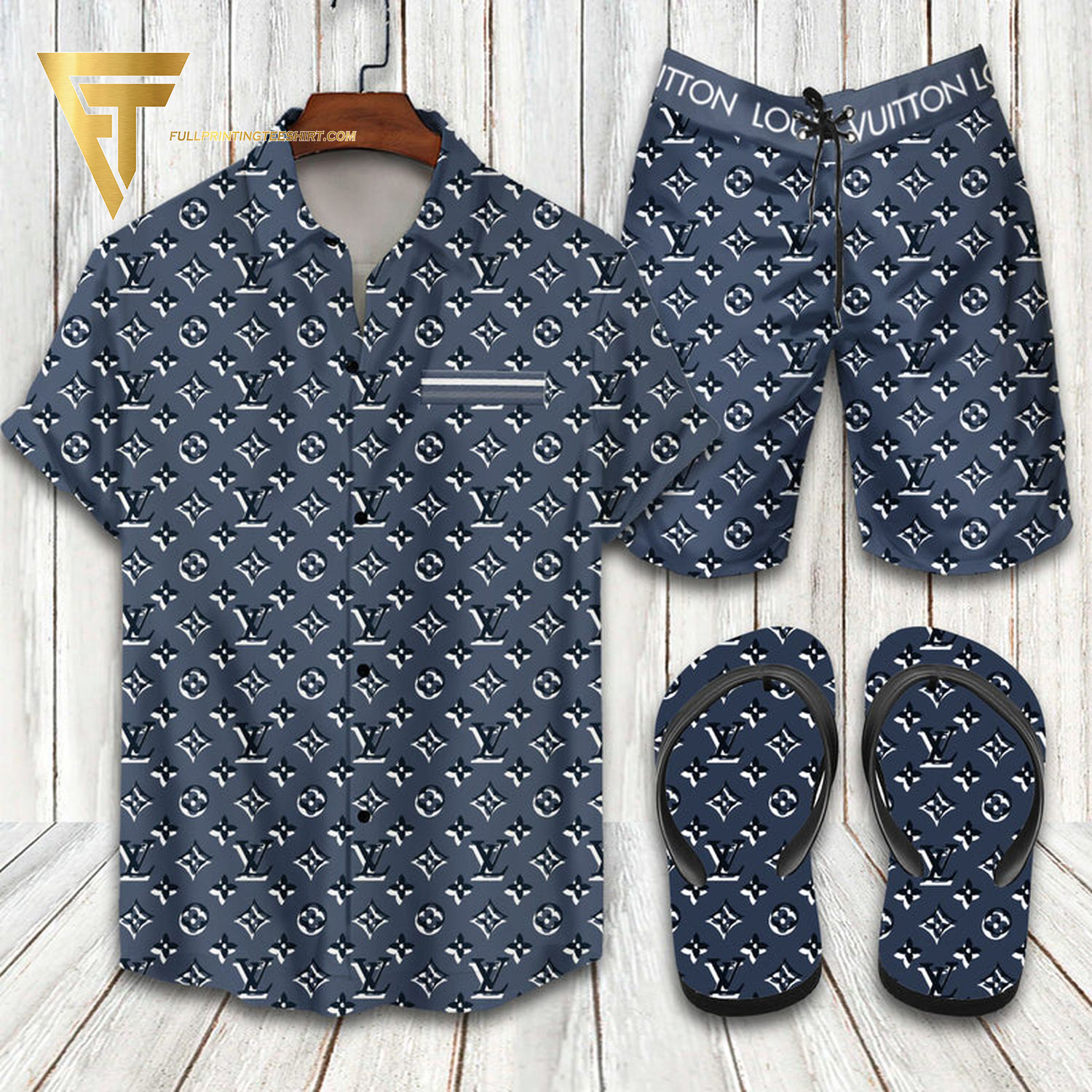 LV2 black navy Hawaiian Shirt And Shorts Or Flip flops QDH