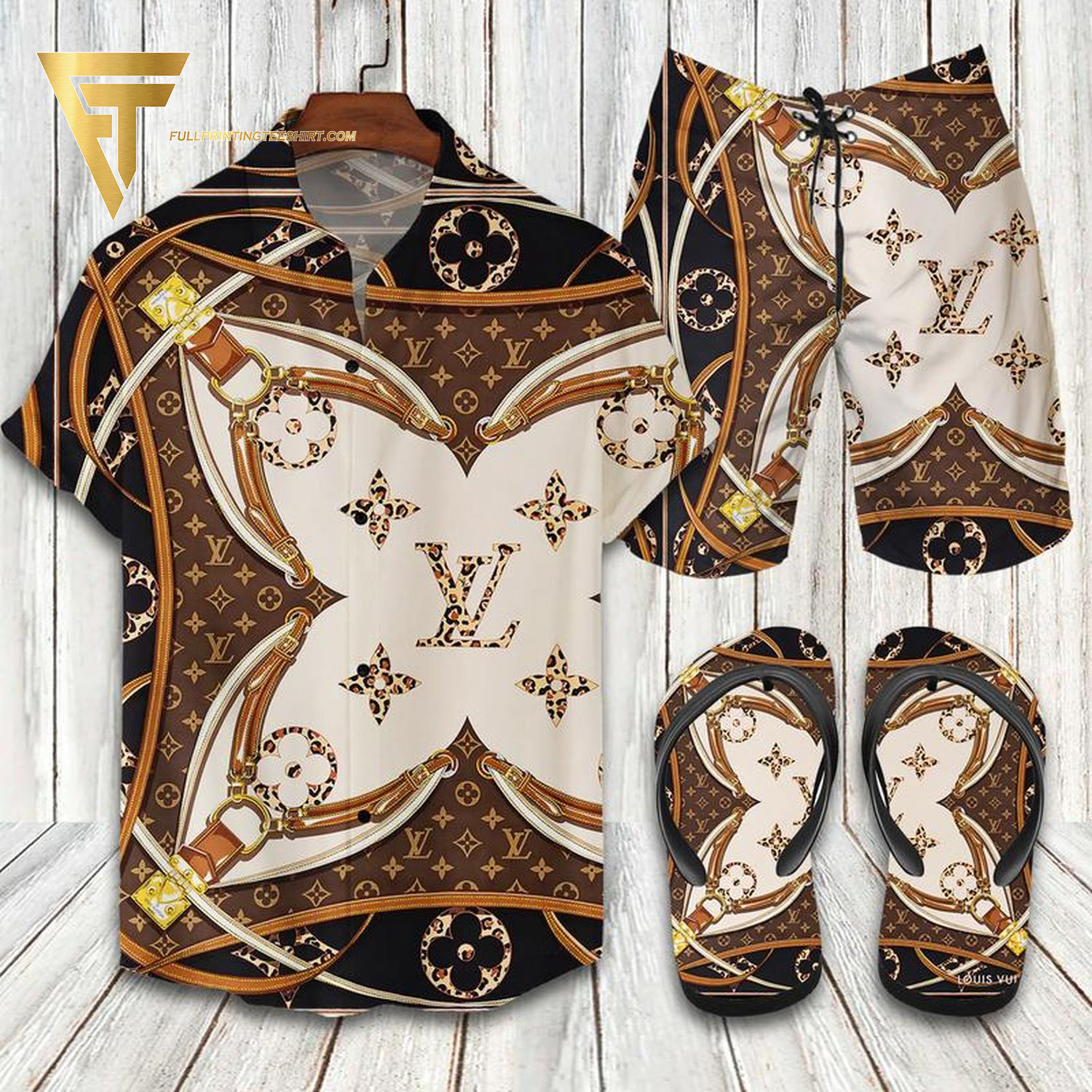 lv2 Brown Flower Luxury Brand Hawaiian Shirt And Shorts Or Flip flops HG