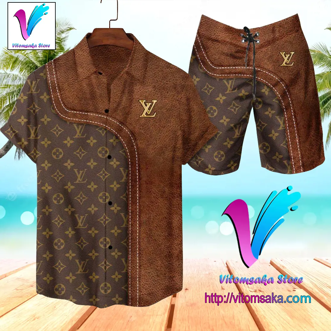 lv2 pattern luxury brand hawaiian shirt and short sets HG