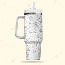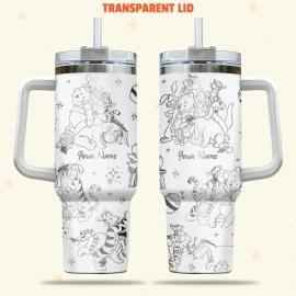 Pooh And Friends Disney Cartoon 30oz or 40oz Quencher Stainless Steel Tumbler With Handle, Best Gift Idea NVA