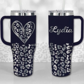 Leopard Print Monogram or Name Personalized 30oz or 40oz Tumbler with Handle, Best Gifts NVA