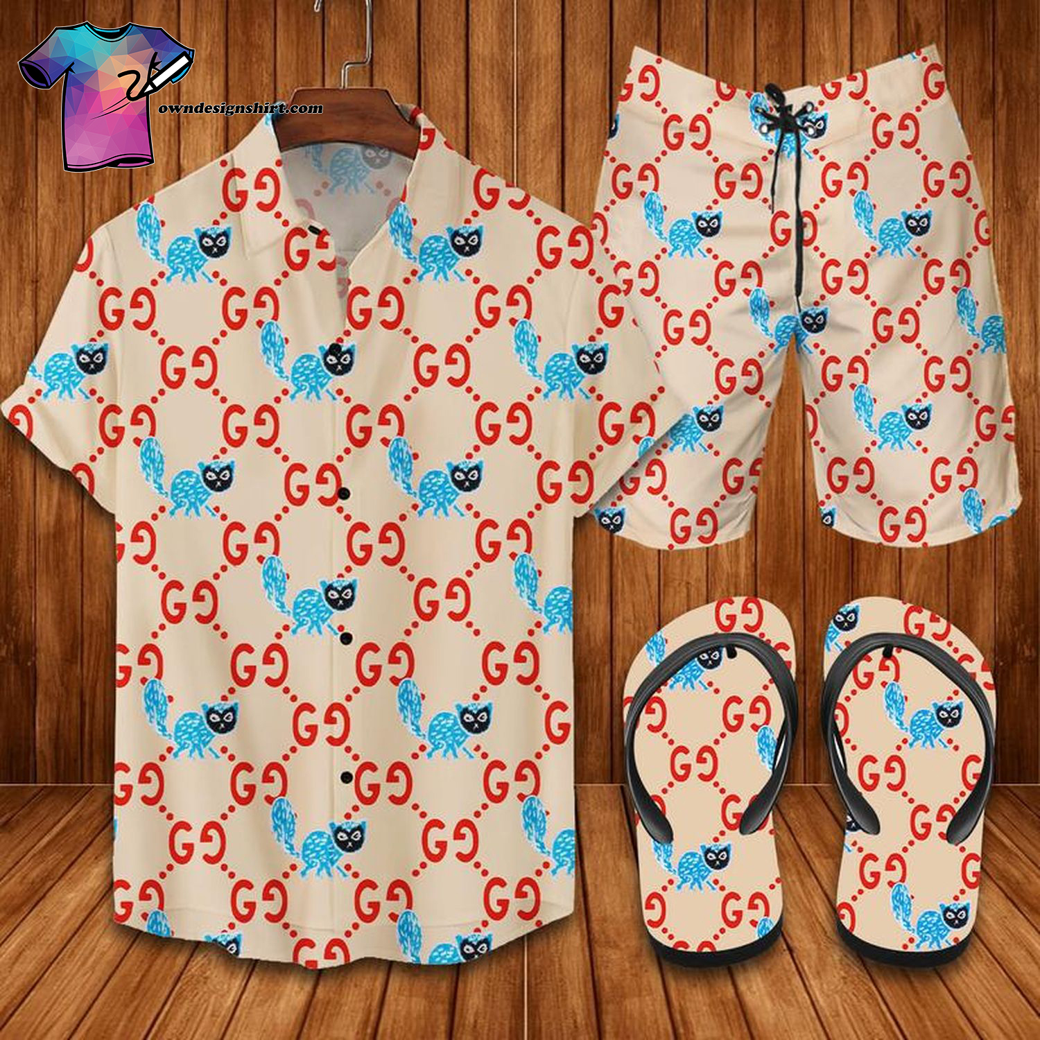 Vintage GC1 Logo Full Print NNA Hawaiian Shirt Beach Shorts And Flip Flops