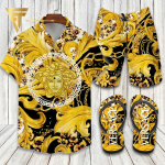 VSC Monogram Gold Logo NNA Hawaiian Shirt Beach Shorts And Flip Flops